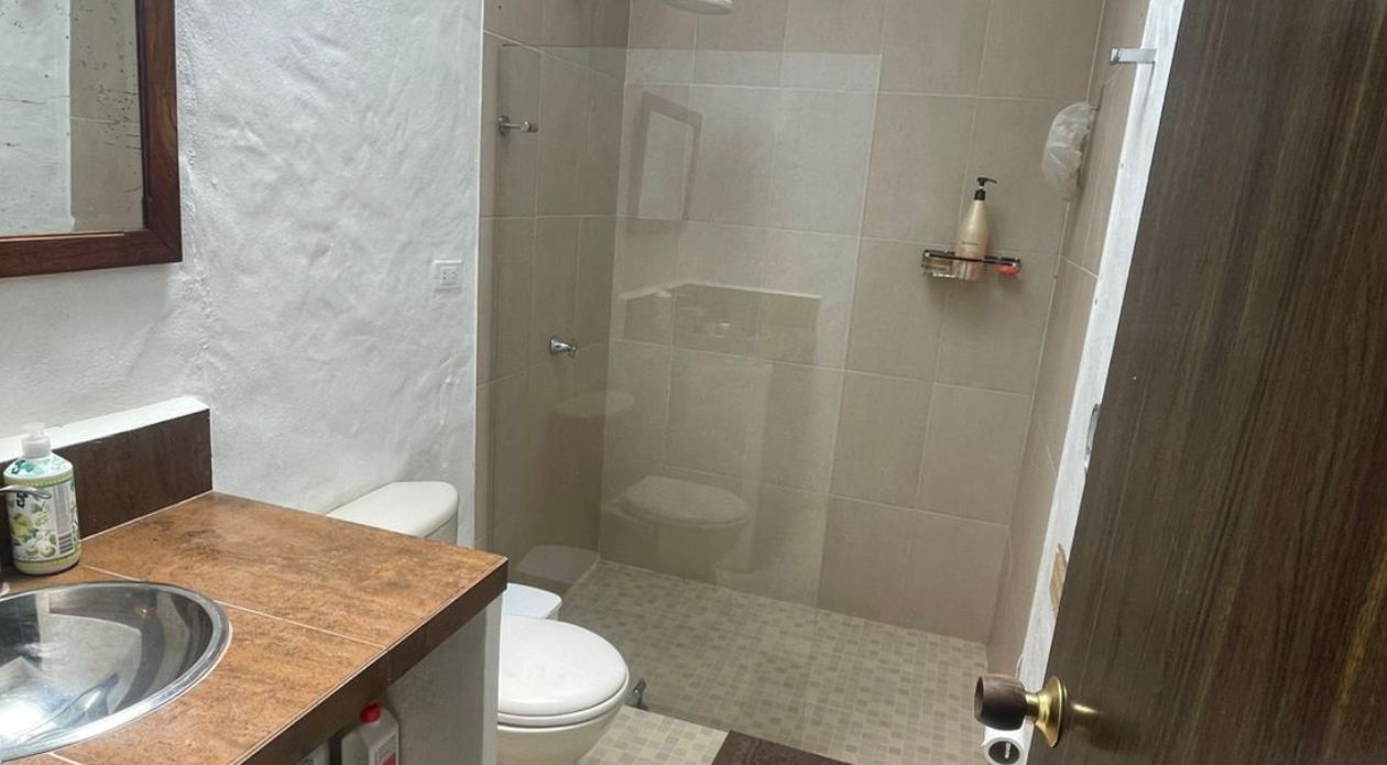 Cama doble, dos camas sencillas y baño privado.